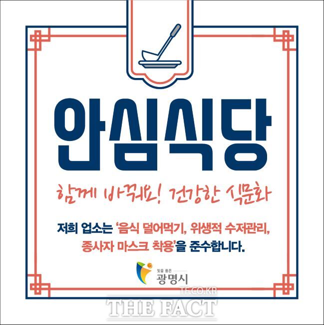 [더팩트|광명=김동선 기자] 경기 광명시가 외식 소비자의 신뢰를 높이고 위생적인 식문화 확산을 위해 20일부터 신규 안심식당 참여 업소를 모집한다.
