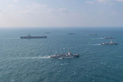 이번 훈련엔 우리 해군 이지스구축함 세종대왕함 등 2척, 미국 해군 제1항모강습단 소속 항공모함 칼빈슨함 등 4척, 일본 해상자위대 구축함 이카즈치함 1척 등 총 7척의 함정이 참가했다.