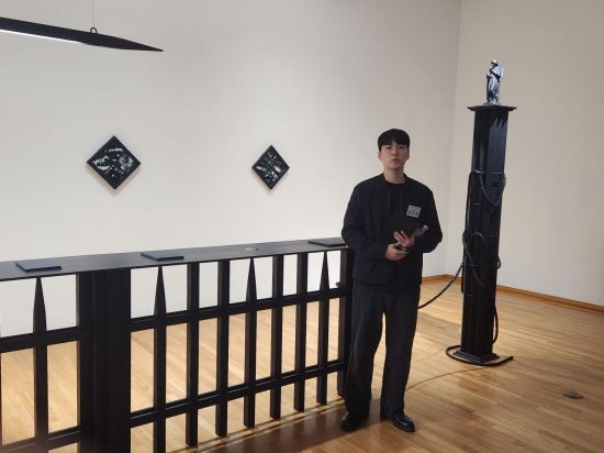 송승준 작가가 전시물을 설명하고 있다. 서믿음 기자 |