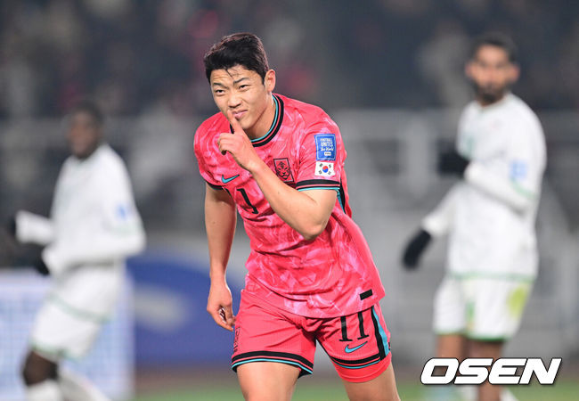 홍명보(56) 감독이 이끄는 한국 축구 대표팀은 20일 오후 8시 고양종합운동장에서 열린 2026 국제축구연맹(FIFA) 북중미 월드컵 아시아지역 3차 예선 B조 7차전 오만과 맞대결을 치르고 있다. 전반전이 마무리 된 현재 한국은 황희찬의 선제골로 1-0 리드를 잡았다.