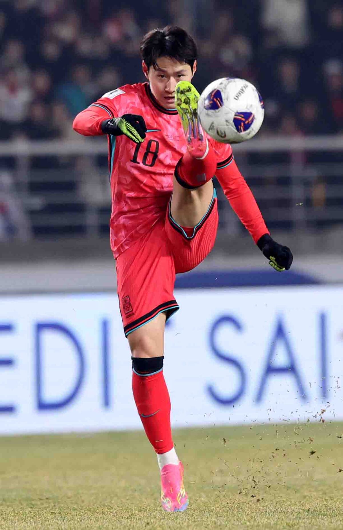20일 오후 경기 고양시 고양종합운동장에서 열린 '2026 국제축구연맹(FIFA) 북중미 월드컵 아시아 지역 3차 예선 B조 7차전' 대한민국과 오만의 경기, 이강인이 패스를 하고 있다. 사진=뉴시스 |