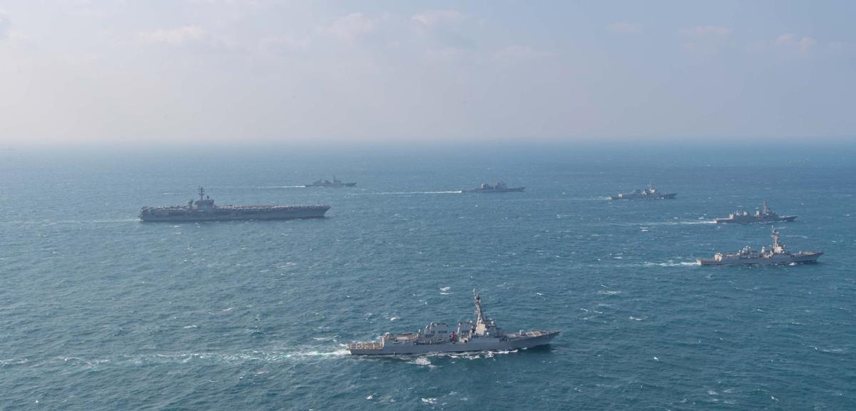 한미일이 도널드 트럼프 2기 행정부 출범 이후 처음으로 17일부터 나흘간 3자 해상 훈련을 실시한 가운데 한미 해군 및 일본 해상자위대 소속 함정들이 18일 제주 남방 공해상에서 연합해상훈련을 하고 있다. 훈련엔 우리 해군 이지스구축함 세종대왕함과 구축함 대조영함을 비롯해 핵항공모함 칼빈슨함 등 미 해군 제1항모강습단 소속 함정 4척, 일본 해상자위대 구축함 이카즈치함 1척 등 총 7척이 참가했다.