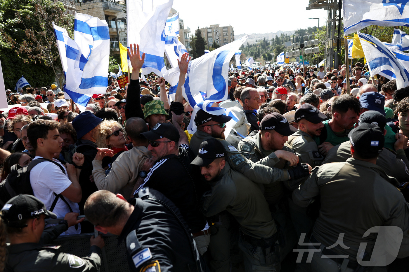 (서울=뉴스1) 김예슬 기자 = 이스라엘에서 정보기관 수장 해임을 반대하고 가자지구 휴전을 촉구하는 반(反)정부 시위가 연일 확산하고 있다.