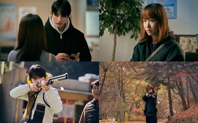 이날 공개된 스틸에는 뺑소니 가해자의 아들과 피해자의 딸인 태화와 미지가 어긋났던 운명을 뒤바꾸고자 분투하는 여정에 동행하게 되는 모습이 담겨 있다. 특히 총을 든 두 사람은 어딘가 불안해 보이는 표정을 짓는가 하면 서로를 지긋이 바라 보고 있어 작품을 더욱 궁금하게 한다.