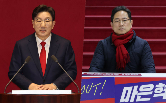 왼쪽부터 권성동 국민의힘 원내대표, 박수영 국민의힘 의원. (사진 = 이데일리 노진환 기자, 연합뉴스) |