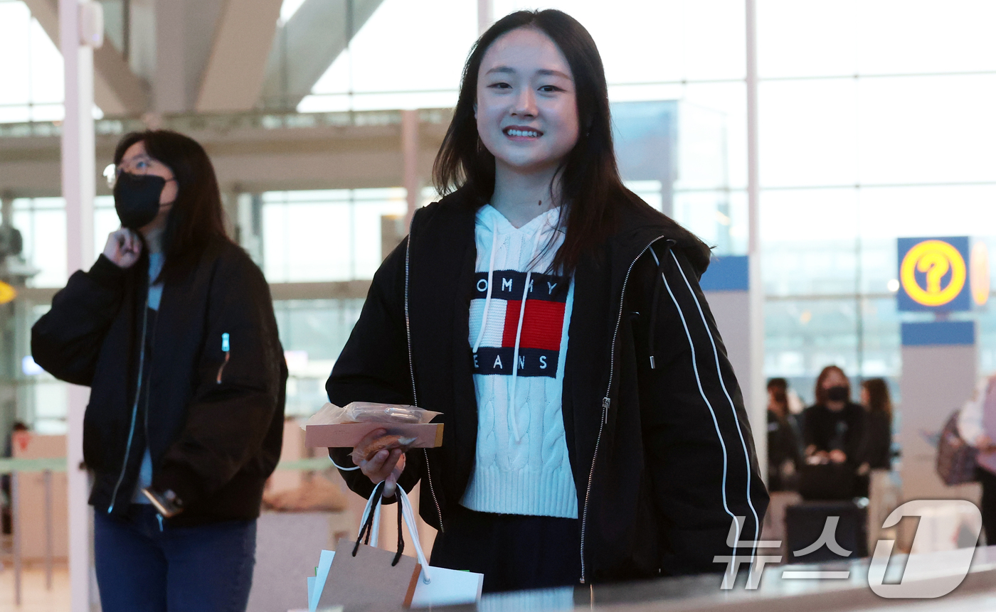 (인천=뉴스1) 김명섭 기자 = 김채연 대한민국 여자 싱글 피겨 스케이팅 국가대표가 23일 오전 인천국제공항에서 오는 25일(현지 시각) 미국 보스턴에서 개막하는 세계선수권 대회에 참가하기 위해 출국하고 있다. 2025.3.23/뉴스1