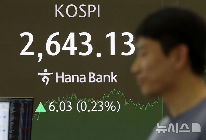 [서울=뉴시스] 홍효식 기자 = 코스피가 전 거래일(2637.10)보다 6.03포인트(0.23%) 오른 2643.13에 마감한 21일 오후 서울 중구 하나은행 딜링룸 전광판에 지수가 표시되고 있다.코스닥 지수는 전 거래일(725.15)보다 5.74포인트(0.79%) 하락한 719.41에 거래를 종료했다. 서울 외환시장에서 원·달러 환율은 전 거래일(1458.9원)보다 3.8원 오른 1462.7원에 주간 거래를 마감했다. 2025.03.21. yesphoto@newsis.com |