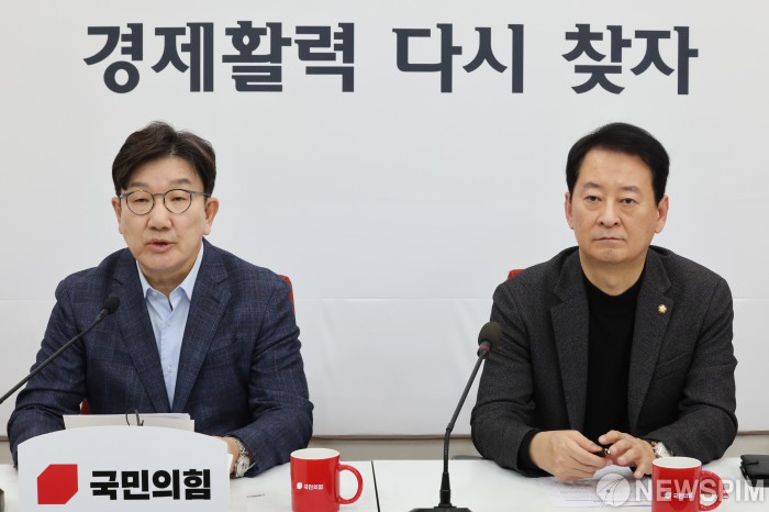 [서울=뉴스핌] 최지환 기자 = 권성동 국민의힘 원내대표가 23일 오후 서울 여의도 국회에서 열린 기자간담회에서 발언하고 있다. 2025.03.23 choipix16@newspim.com