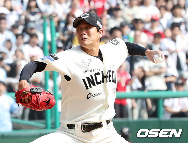 [OSEN=인천, 길준영 기자] 프로야구 SSG 랜더스 김광현(37)이 시즌 첫 등판에서 첫 승리를 수확했다.