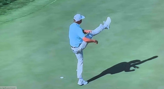 1.6m 파 퍼트를 놓친 키자이어가 퍼터를 공중으로 차버렸다. [사진 미국 골프채널 캡처] |