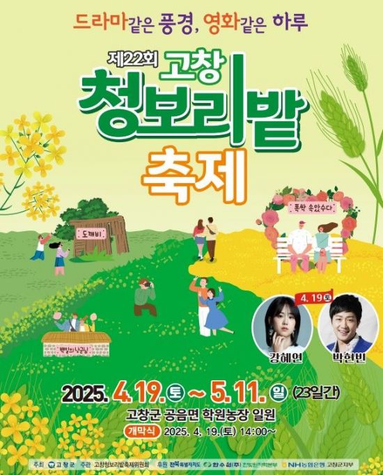 고창 청보리밭 축제는 ‘드라마 같은 풍경, 영화 같은 하루’를 주제로 정했다. 실제 고창 청보리밭에서 촬영된 드라마와 영화 속 장면을 재현한 포토존을 설치해 방문객들에게 영화·드라마 속 장면에 있는 듯한 경험을 선사할 예정이다.