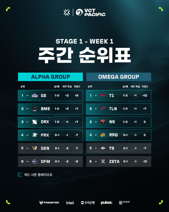 VCT 퍼시픽에 참가하고 있는 네 개의 한국팀 가운데 젠지를 제외한 DRX와 T1, 농심 레드포스가 승리를 따내면서 깔끔하게 스타트를 끊었다.