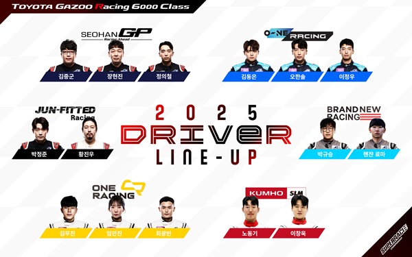 [스포츠투데이 이상필 기자] 슈퍼레이스가 2025시즌 토요타 가주 레이싱 6000 클래스 팀별 최종 라인업을 발표했다.