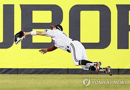 이때 박해민이 쏜살같이 달려 몸을 날렸다.