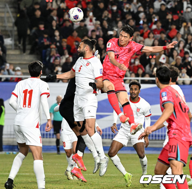 전반 한국 조유민이 헤더를 시도하고 있다. 2025.03.25 /sunday@osen.co.kr