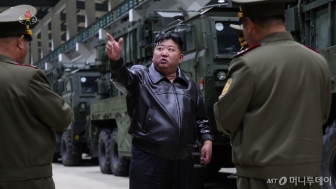 김정은 북한 국무위원장이 2024년 5월14일 미사일 연합부대를 찾아 새로 배치할 전술미사일 무기체계를 점검했다. 조선중앙TV 2024년 5월15일 보도. /조선중앙TV 캡처=뉴시스 |