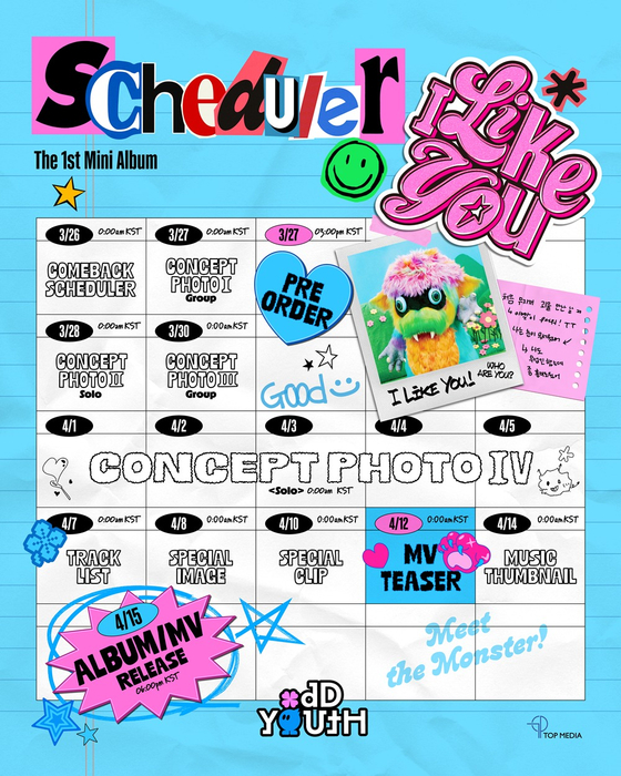공개된 스케줄러는 스카이 블루 컬러 바탕에 달력 형식의 디자인으로 제작되어 날짜별 프로모션 일정이 상세히 담겨 있으며, 유니크한 타이포그래피와 멤버들의 개성 넘치는 손글씨 등으로 구성됐다.