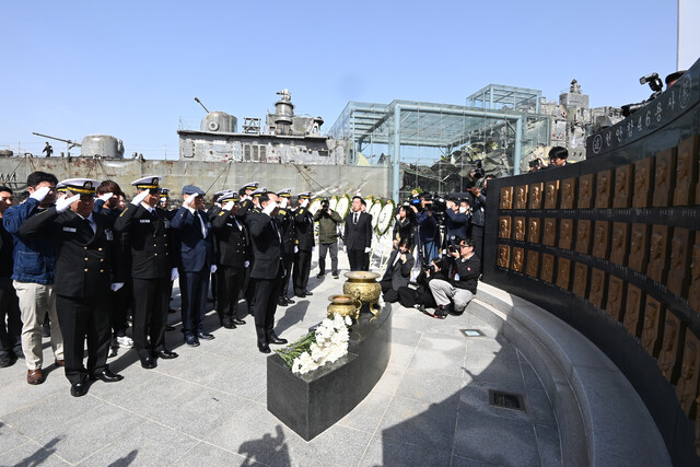 해군은 26일 경기 평택 2함대사령부 내 천안함 46용사 추모비 앞에서 제15주기 천안함 46용사 추모식을 거행했다.
