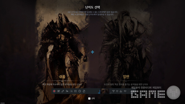 25일 프리미엄 버전을 구매했다. 한정판 패키지 게임처럼 뭔가 다른 게 있을까 싶기도 했지만 28일 출시되는 카잔을 3일 빠른 25일 즐길 수 있다는 것 말고는 없는 듯하다. 구매하고 첫 플레이. 데모 버전과 다를 게 없었다. 그런데 한 번 죽고, 두 번 죽고 나니 뭔가 선택지가 뜬다. 아마 두세 번 이상 죽으면 난이도 선택이 뜨도록 한 것으로 보인다. 이것이 얼마 전 넥슨 인터뷰 등에서 들을 수 있었던 초보자를 위한 배려인가 싶다.