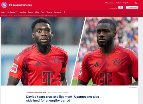 뮌헨 구단은 26일(현지시간) 홈페이지를 통해 데이비스와 우파메카노의 부상 상태를 공개했다.