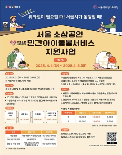 지난해 11월 시작한 '서울시 소상공인 민간 아이돌봄서비스 지원사업'은 자녀를 키우는 소상공인이 민간기관에서 아이돌봄서비스를 이용할 경우 시간당 돌봄비 3분의 2를 서울시가 지원해 주는 정책이다.