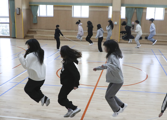 실내체육관에서 줄넘기를 하는 학생들. 연합뉴스 |