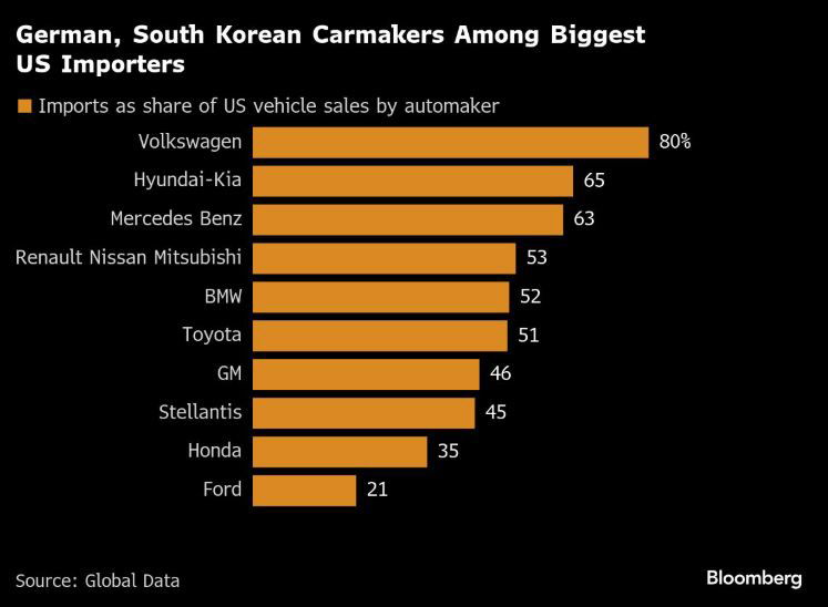이밖에 스탤란티스의 수입 비중은 45%, 미국에서 팔리는 포드의 21%는 미국 이외 지역에서 생산해서 수입 중이다.