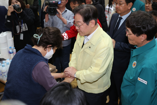 이 대표는 여당을 향해 “4조 8700억원이나 되는 막대한 예산을 한푼도 안 쓰면서 마치 예산이 없어서 산불 대책을 못 세우는 것처럼 국민 상대로 거짓말을 하냐”고 쏘아붙였다. 그는 “가족을 잃고 전 재산을 다 불태우고 망연자실하며 앉아 계신 이재민들 눈 앞에서 거짓말하며 장난하고 싶냐”며 “양심이 있어야지, 최소한의 인간성을 회복해야 한다”고 강도 높게 비판했다. 그러면서 “정쟁도 좋고 권력도 좋지만 국민의힘은 정신 차리고 국민 상대로 아픈 분들에게 거짓말하지 말라”고 경고했다.