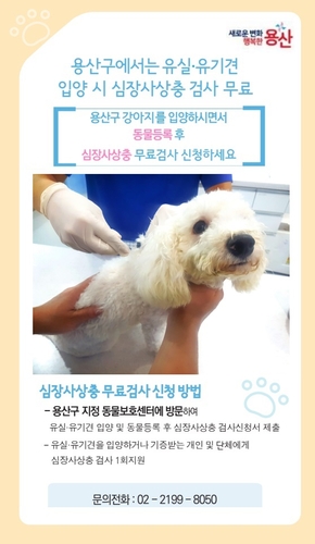 박희영 용산구청장은 "유실·유기견 입양을 결정해주신 분들께 조금이나마 도움을 드리고자 심장사상충 검사를 무료로 진행하게 됐다"라며 "앞으로도 반려동물과 함께 건강하고 행복하게 공존하는 문화를 조성하는 데 최선을 다하겠다"라고 전했다.
