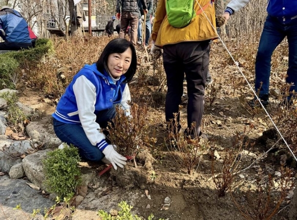 서울시의회 환경수자원위원회 이영실 의원(더불어민주당, 중랑1)이 지난 22일 사가정공원에서 열린 제80회 식목일 기념 식목 행사에 참석해 시민들과 함께 철쭉나무를 심었다.