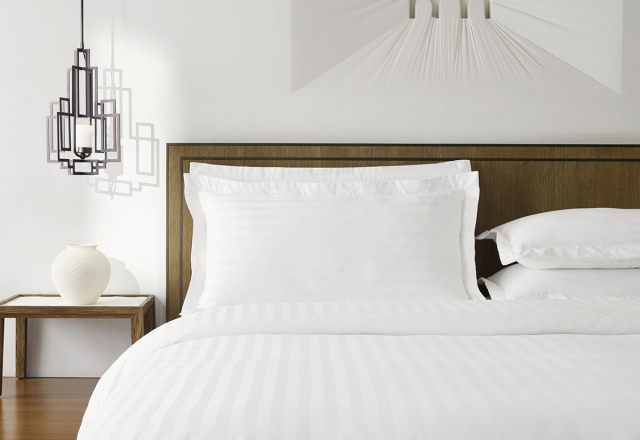 ‘안단테’는 잔잔한 프레임형 자수와 정갈한 실루엣이 어우러진 클래식한 디자인으로, 고요하고 우아한 호텔 침실 연출에 제격이다. 최고급 120수 광폭 면을 사용해 가볍고 부드러운 촉감을 극대화했다. 침구 하나만으로도 품격 있는 침실 연출이 가능해 혼수 또는 예단 상품으로도 손색없다. 정교한 다마스크 자수를 화이트 침구 위에 섬세하게 수놓은 ‘발렌티’는 고급스러운 분위기를 극대화해 침실을 단숨에 격조 높은 공간으로 완성해준다. 자수 패드까지 함께 구성할 수 있어 완성도 높은 풀세트 침실 연출이 가능하며, 프리미엄 침구를 찾는 이들을 위한 최적의 선택지다.