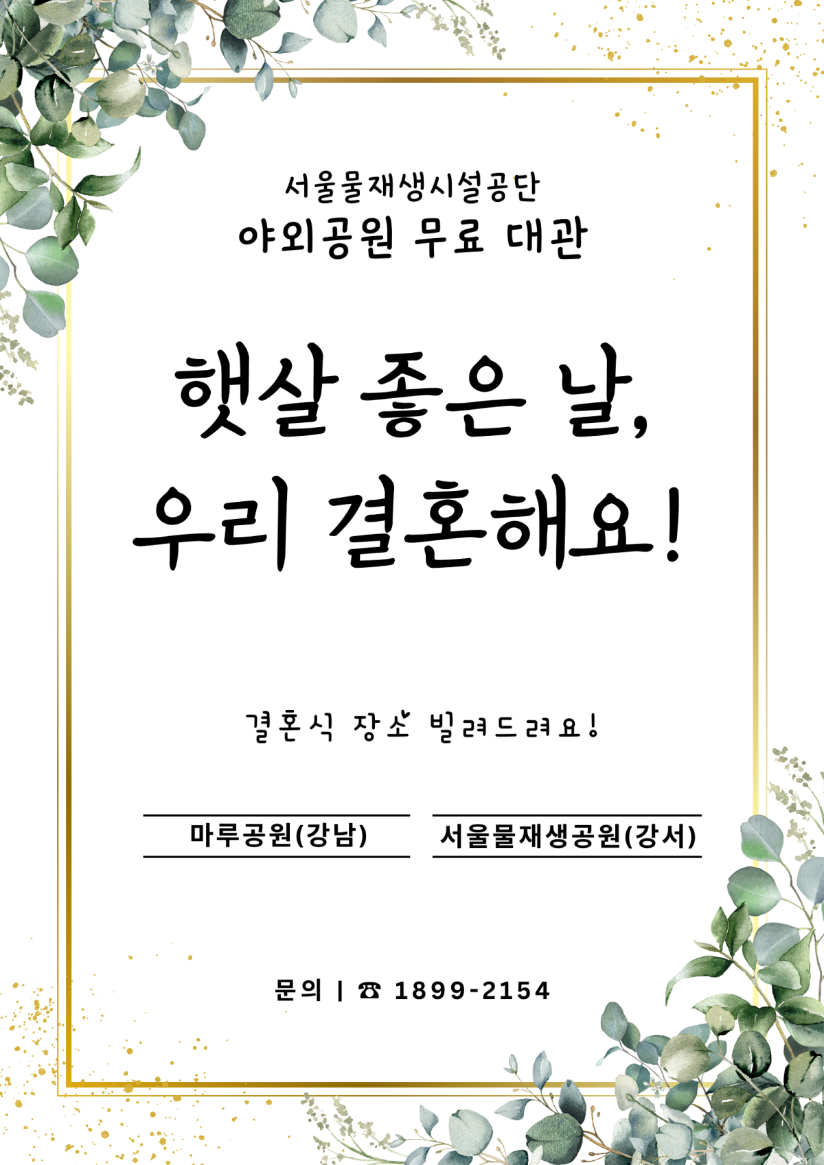 결혼식 비용이 부담됐던 예비부부를 위해 서울물재생시설공단(공단)이 야외공원 2곳을 무료 대관 해준다.