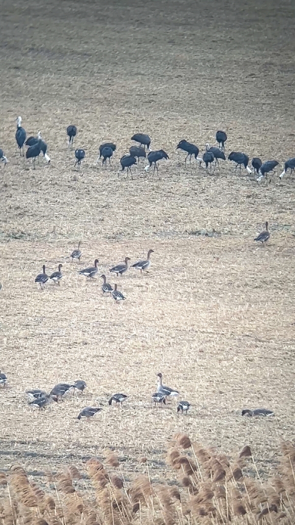 흑두루미는 환경부에서 지정한 멸종위기 야생생물 2급으로 일본과 우리나라에서 월동하고 번식을 위해 러시아 중국 등으로 돌아간다. 장항습지에서 한 두마리가 재두루미 무리에 섞여 관찰된 적은 있었으나 이번처럼 집단으로 관찰되기는 처음이다.