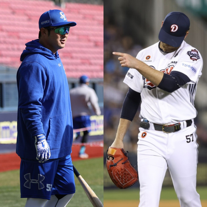 어빈과 박병호가 29일 경기 전 오해를 풀었다. 사진 | 삼성 라이온즈, 두산 베어스 |