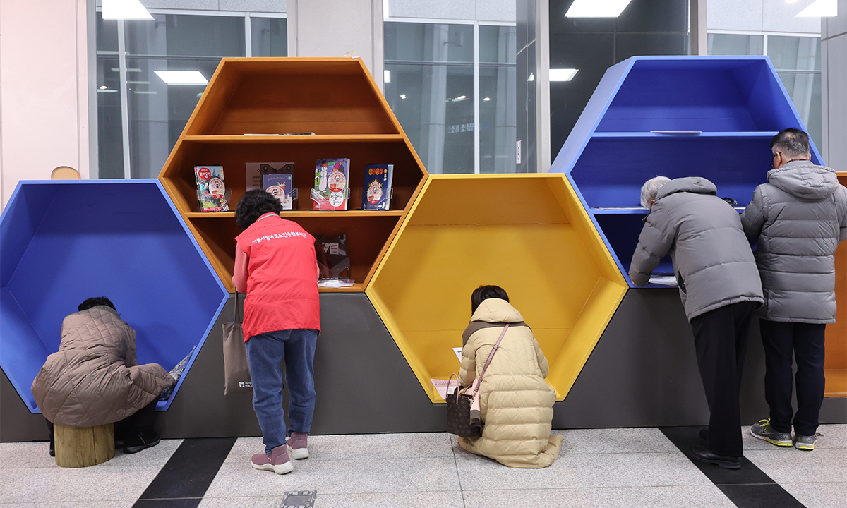 '노인 일자리 박람회'에서 어르신들이 구직신청서를 작성하고 있다. 연합뉴스 |