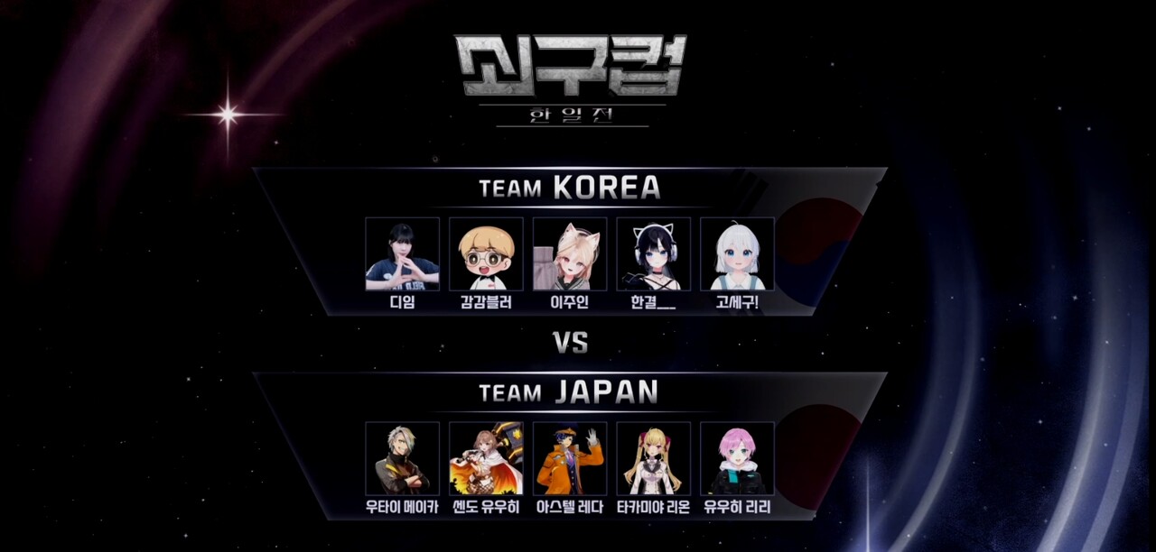 팀 코리아는 서포터 주최자 고세구(아이언4)를 비롯해 탑 디임(브론즈4), 정글 감블러(에메랄드3), 미드 이주인(골드3), 원딜 한결(브론즈4)로 구성됐으며, 팀 재팬은 탑 우타이 메이카(골드3), 정글 센도 유우히(다이아3), 미드 아스텔 레다(실버3), 원딜 타카미야 리온(언랭), 서포터 유우히 리리(골드4)로 구성됐다.