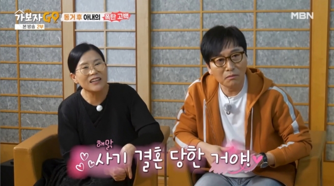 이내 그는 "(아내가) 처음 만날 땐 나랑 동갑이라고 했다. 동거하고 다음 날 2살 더 많다고 하더라"고 전했다. 이에 아내는 "요즘 말로 하면 사기 결혼 당한 것"이라고 해맑게 얘기했다.