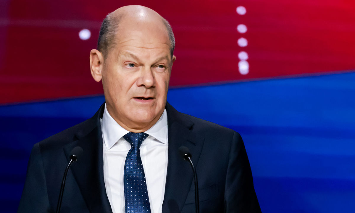 올라프 숄츠 독일 총리가 30일(현지시간) 하노버 산업·기술 박람회 개막식에 참석해 연설하고 있다. EPA연합뉴스 |