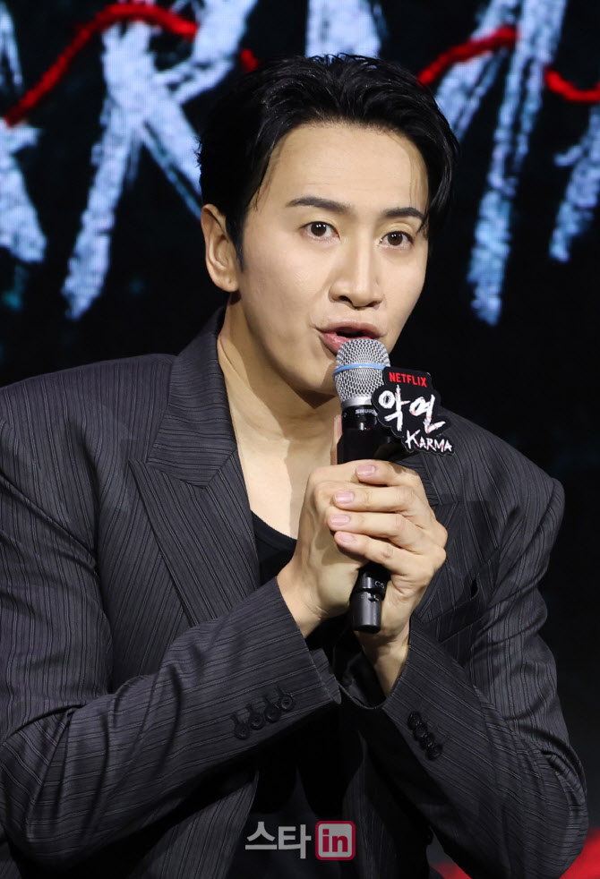 [이데일리 스타in 방인권 기자] 배우 이광수가 31일 서울 JW메리어트 동대문 스퀘어에서 열린 넷플릭스 시리즈 '악연' 제작발표회에 참석해 인사말을 하고 있다.