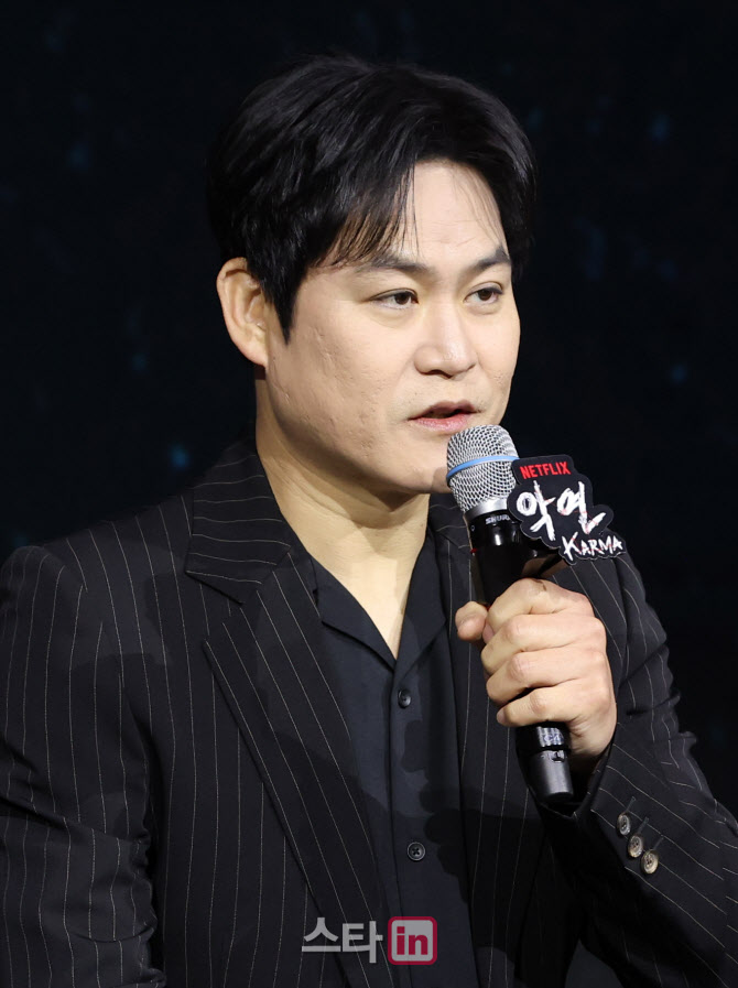 [이데일리 스타in 방인권 기자] 배우 김성균이 31일 서울 JW메리어트 동대문 스퀘어에서 열린 넷플릭스 시리즈 '악연' 제작발표회에 참석해 인사말을 하고 있다.