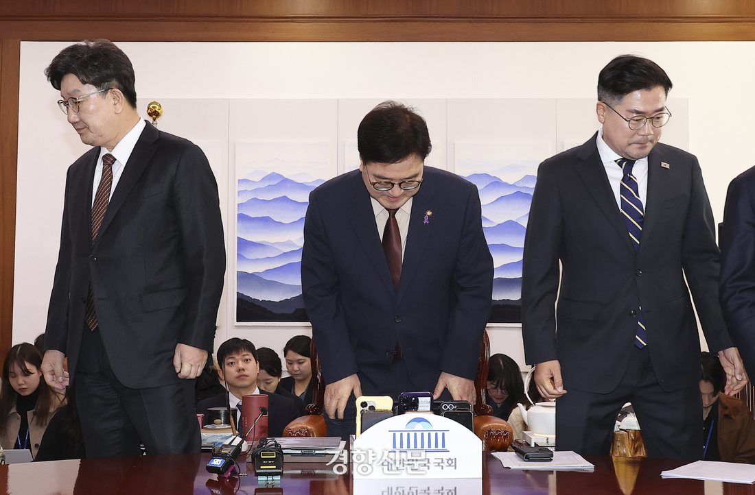 권성동 국민의힘 원내대표와 박찬대 민주당 원내대표는 이날 국회에서 우 의장 주재로 오전부터 세 차례에 걸쳐 논의를 이어갔지만 견해차를 좁히지 못했다.