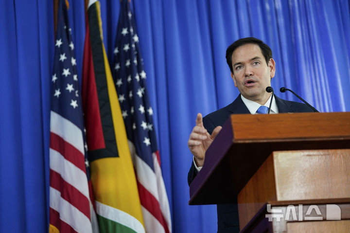 [조지타운=AP/뉴시스] 마코 루비오 미국 국무장관이 내달 2~4일 북대서양조약기구(NATO·나토) 본부가 있는 브뤼셀을 방문한다고 미국 국무부가 밝혔다. 사진은 루비오 국무장관이 지난 27일 가이이나 조지타운에서 모하메드 이르판 알리 가이아나 대통령과 공동 기자회견을 하는 모습. 2025.04.01. |
