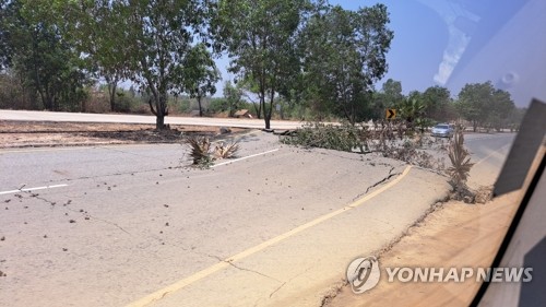 강진으로 파괴된 미얀마 고속도로 |