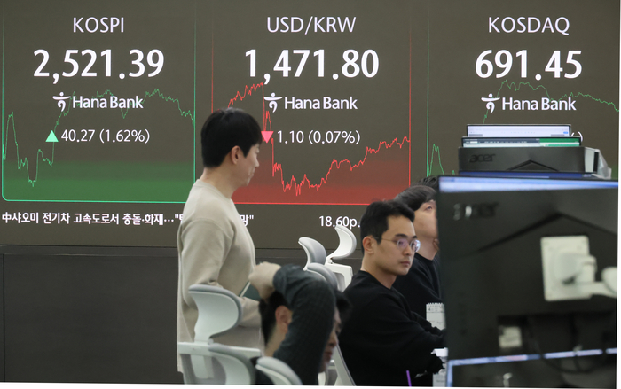 1일 서울 중구 하나은행 본점 딜링룸 현황판에 코스피와 원달러 환율, 코스닥 지수 등이 표시돼 있다. [사진 = 연합뉴스] |