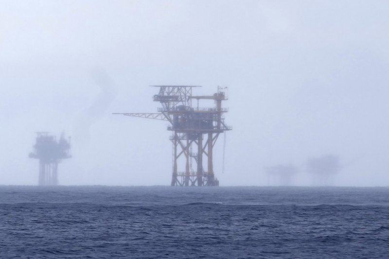 국제 유가가 1일(현지시간) 도널드 트럼프 미국 대통령의 대규모 관세 불확실성 속에 소폭 하락했다. 2023년 9월 16일 미국 텍사스주 갤버스톤의 멕시코만 연안 해양 시추 플랫폼들이 해무에 가려져 있다. AP 뉴시스 |