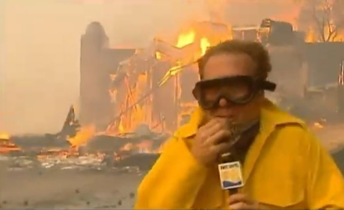불 타는 집 앞에서 노란 재난복을 입고 고글을 쓴 기자가 연신 마스크를 올려가며 생방송을 하고 있었다. 불길이 거세게 일고 있는 집은 바로 기자 자신의 집이었다. "저기 불타는 곳이 거실이고 그 뒤가 창고인데요…25년 동안 살았는데…"