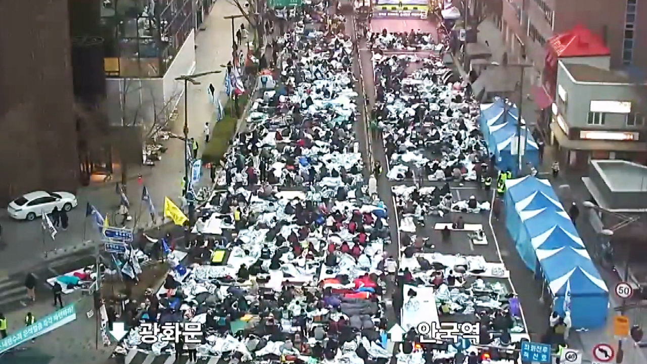 오늘 새벽 5시, 텅 빈 광화문 광장과는 달리 500m 떨어진 안국역에는 차량이 빼곡히 늘어섰습니다.