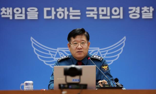 이호영 경찰청장 직무대행이 2일 서울 서대문구 경찰청에서 열린 탄핵선고일 대비 전국 경찰지휘관 화상회의에서 모두발언을 하고 있다. 뉴스1 |