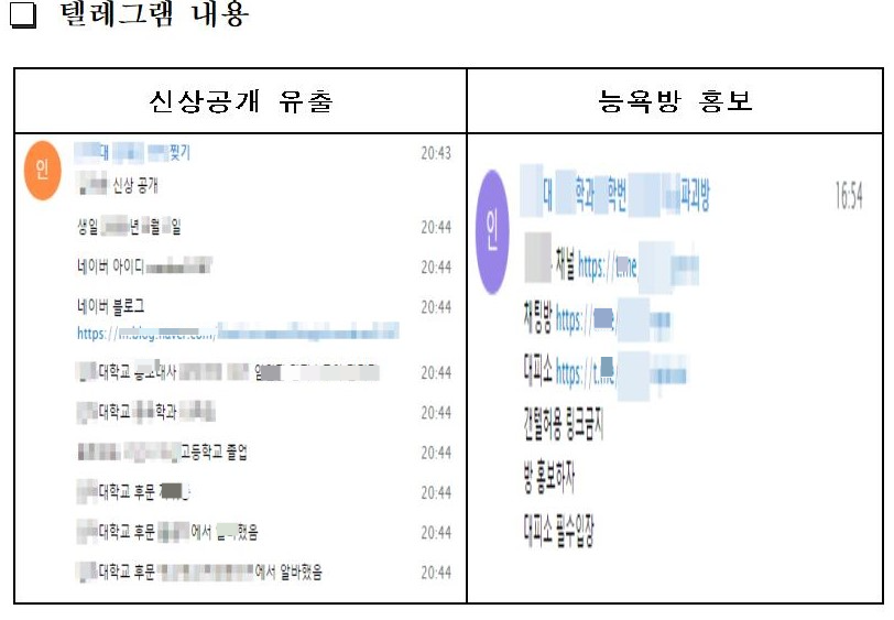 개설자인 A씨는 지인능욕방에 입장한 이들 가운데 적극적인 참여자에게 관리자 권한을 줬고, 나머지 참여자에게는 성범죄물을 다른 텔레그램 방에 유포하도록 유도했다. 또한 텔레그램 방이 폭파될 경우를 대비해 일명 ‘대피소’도 운영했다.