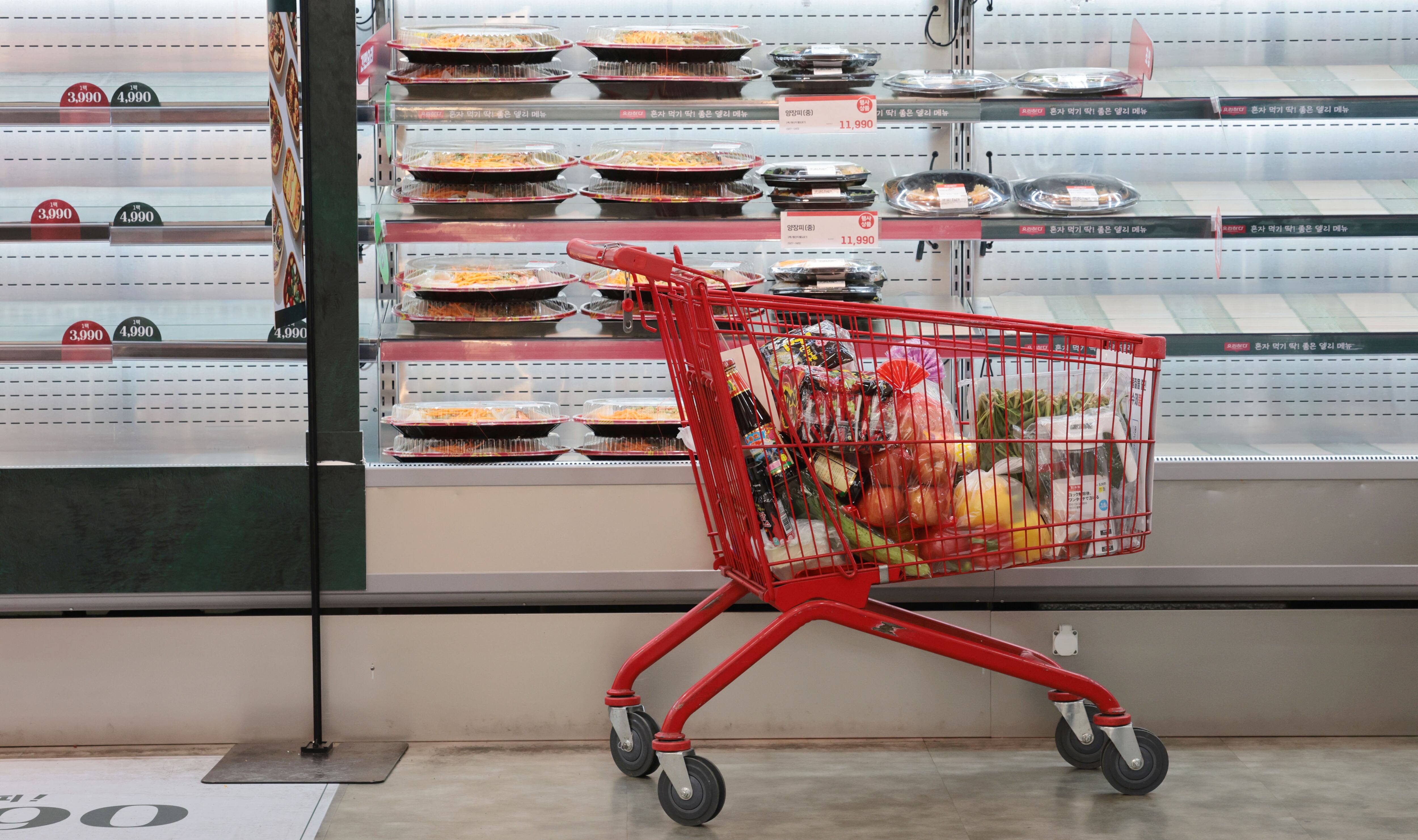 서울 시내의 한 마트 장바구니 카트가 놓여있다. 2025.3.30/연합뉴스 |